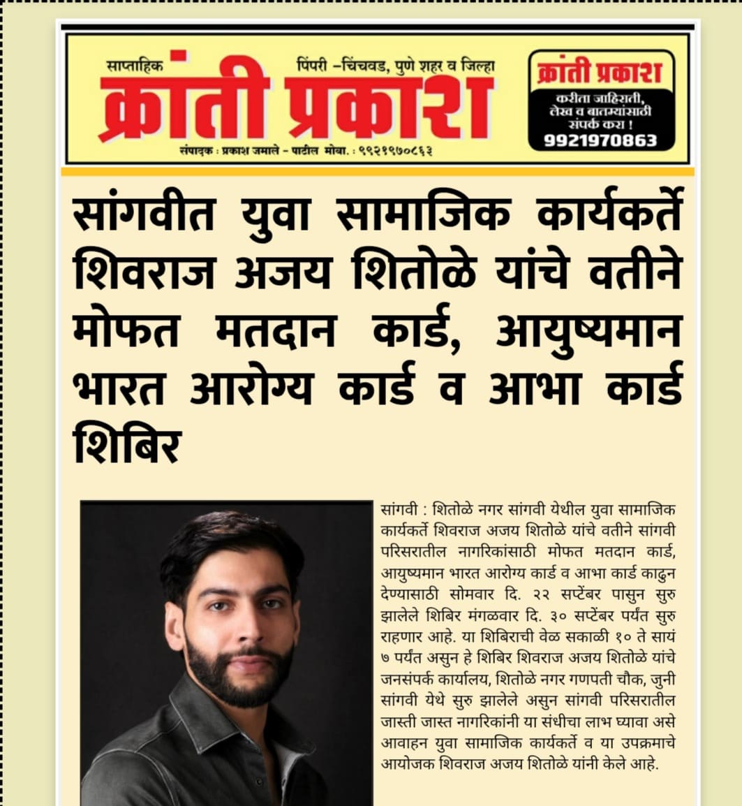 From my grandfather Late Nanasaheb Gopalrao Shitole, whose leadership shaped the civic and social decisions of Sangvi and PCMC for decades, to my father Ajay Shitole and uncle Atul Shitole’s constant presence for people… I carry forward a duty, not a title.
